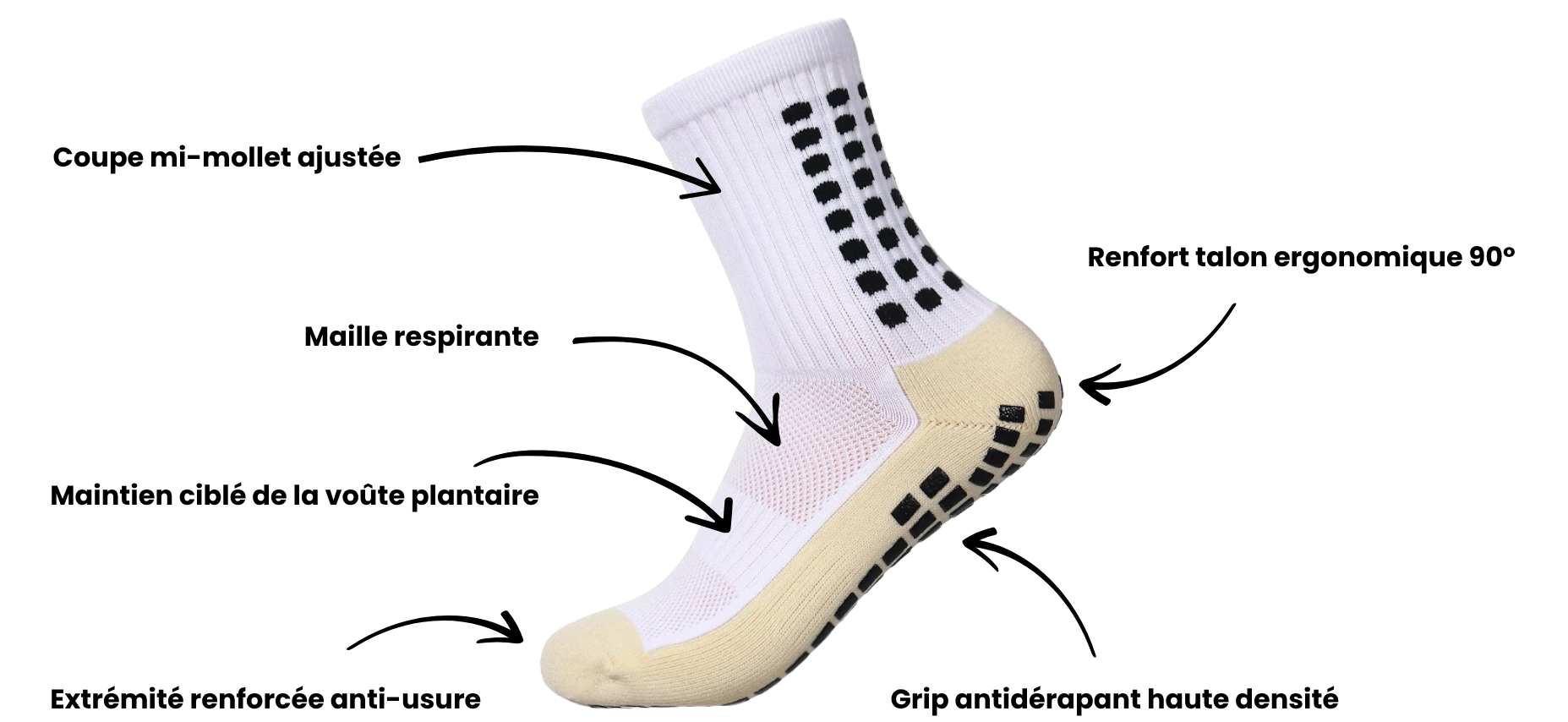 Tous les joueurs de haut niveau utilisent des chaussettes grip pour plus de stabilité, d’appuis et de précision.
